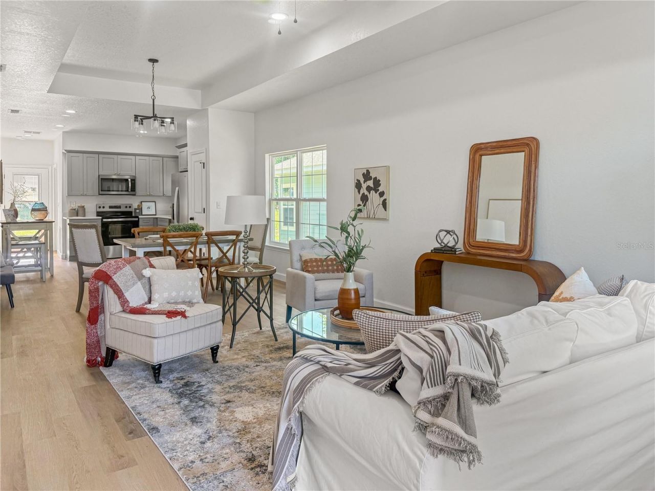 3-bedroom, 2-bath new construction home located in Alachua, FL. This home offers approximately 1,243 heated square feet and is situated on a corner lot with convenient access to I-75 and Gainesville.The interior features an open living, dining, and kitchen area with quartz countertops and wood cabinetry throughout. Luxury vinyl plank flooring is installed in all main living areas and bedrooms.The layout includes two bedrooms and one full bathroom toward the front of the home, with the primary bedroom located toward the rear. The primary bathroom features a walk-in shower.Additional features include a Ring doorbell and modern finishes throughout.