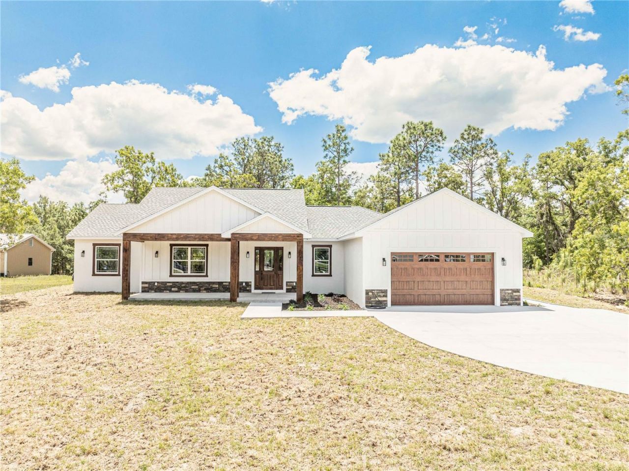 Welcome home, to your Luxury Custom Home on 1 AcreThis exceptional residence nestled in the sought-after Oak Hill subdivision of Wildwood, Florida, where timeless craftsmanship meets modern sophistication. Set on a spacious 1-acre lot, this stunning 3-bedroom, 2.5-bathroom block and stucco home has been meticulously designed to combine elegance, functionality, and durability-perfectly suited for the Florida lifestyle.Elegant Design & Finishes. From the moment you step inside, you'll be greeted by soaring ceilings, abundant natural light, and a thoughtfully designed open floor plan that seamlessly connects the living, dining, and kitchen areas. Every detail has been elevated with a custom trim and molding package, showcasing true craftsmanship and adding an upscale touch throughout.The gourmet kitchen is a chef's dream-boasting upgraded cabinetry, premium countertops, and stainless steel appliances-ideal for both intimate family gatherings and entertaining on a grand scale.Luxurious Living Spaces. Each of the three bedrooms is generously sized, with the owner's suite offering a tranquil retreat featuring a spa-inspired bath with dual vanities, a walk-in shower, and designer finishes. With two full bathrooms; and one half bath, convenience and comfort are ensured for family and guests alike.Built to Last. Constructed with block and stucco, this home is engineered to withstand Florida's unique climate, providing peace of mind for years to come. Energy-efficient design elements and upgraded finishes enhance both performance and beauty.Building elements include, Masonry structure (not wood frame), 5/8 plywood roof decking (not pressed OSB), 5/8 ceiling drywall, R-30 Batt insulation with blow in, Walls between bedrooms and common areas are soundproofed, Low E insulated windows, Fiberglass composite exterior doors, Upgraded trim package to include custom doors and molding, Custom solid wood cabinets with stone countertops. Outdoor & Lifestyle. The expansive 1-acre lot offers endless possibilities-whether you envision a pool, outdoor kitchen, or serene garden space, this property provides the perfect canvas. The Oak Hill subdivision is known for its prestige, privacy, and prime location, just minutes from The Villages, world-class shopping, dining, and healthcare.This is more than a home-it's a statement of refined living in one of Wildwood's most prestigious communities. Schedule your showing today, this home won't last long!